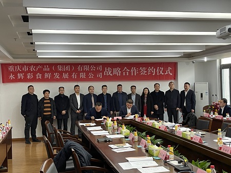 2021年12月20日上午,重慶市農(nóng)產(chǎn)品(集團(tuán))有限公司與永輝彩食鮮發(fā)展有限公司隆重舉行戰(zhàn)略合作簽約儀式。